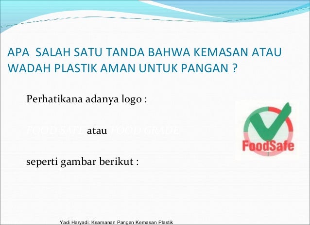 Kenali jenisjenis plastik kemasan yang aman bagi. · plastik jenis polikarbonat (computer) yang memiliki tanda segitiga dan angka tujuh ini memiliki ciri ringan, jernih dan tidak mudah pecah. Plastik jenis ini sebenarnya cukup aman digunakan untuk menyimpan minuman selama tidak ada goresan atau tandatanda kerusakan lainnya. Kenali jenisjenis plastik kemasan yang aman bagi kesehatan. Lantas kemasan plastik yang seperti apakah yang aman digunakan untuk menyimpan makanan yang kita miliki? Biasanya pada kemasan plastik terdapat kode yang menunjukan identitas plastik tersebut, dan pada kesempatan kali ini penulis akan berbagi plastikplastik apa saja yang aman digunakan untuk menyimpan makanan dan minuman. Three cara mengetahui kemasan plastik yang aman buat makanan. Tanda ini biasanya terdapat di bagian bawah plastik atau di kemasan plastik tersebut. Menurut kepala laboratorium teknologi polimer dan membran itb, akhmad zaindal abidin, plastik yang memiliki tanda meals grade terbuat dari bahan yang aman untuk makanan dan tubuh serta telah melalui uji yang ketat. Tanda segitiga pada kemasan plastik terjiplak. Hdpe memiliki sifat bahan yang lebih kuat, keras, buram dan lebih tahan terhadap suhu tinggi. Hdpe merupakan salah satu bahan plastik yang aman untuk digunakan karena kemampuan untuk mencegah reaksi kimia antara kemasan plastik berbahan hdpe dengan makanan/minuman yang dikemasnya. Kenali tanda segitiga pada kemasan plastik cari yg halal. Hdpe memiliki sifat bahan yang lebih kuat, keras, buram dan lebih tahan terhadap suhu tinggi. Hdpe merupakan salah satu bahan plastik yang aman untuk digunakan karena kemampuan untuk mencegah reaksi kimia antara kemasan plastik berbahan hdpe dengan makanan/minuman yang dikemasnya. Tanda pada botol (bahan plastik) blogogspogot. · botol plastik jenis hdpe memiliki sifat bahan yang lebih kuat, keras, buram dan lebih tahan terhadap suhu tinggi. Merupakan salah satu bahan plastik yang aman untuk digunakan karena kemampuan untuk mencegah reaksi kimia antara kemasan plastik berbahan hdpe dengan makanan/minuman yang dikemasnya. Ketahuilah arti 7 simbol segitiga pada kemasan plastik. Botol plastik jenis hdpe memiliki sifat bahan yang lebih kuat, keras, buram dan lebih tahan terhadap suhu tinggi. Merupakan salah satu bahan plastik yang aman untuk digunakan karena kemampuan untuk mencegah reaksi kimia antara kemasan plastik berbahan hdpe dengan makanan/minuman yang dikemasnya. Standar food grade packaging untuk kemasan makanan anda. Nah ukuran aman pada plastik sebagai dasar dari food grade packaging didasarkan pada besaran migrasi bahanbahan kimia yang membentuk plastik itu sendiri ke dalam makanan. Agar lebih mempermudah, pada tahun 1998 the society of plastic industry, amerika mengeluarkan kodekode khusus untuk mengidentifikasi kemasan mana saja yang sudah meals grade.